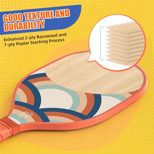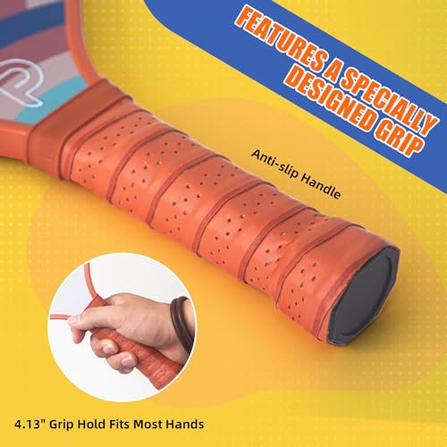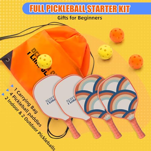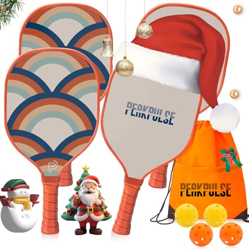 Peakpulse Pickleball Paddles,Pickleball Paddles Set of 4 Premium Wood Pickleball Rackets,Pickleball Paddle with Ergonomic Cushion Grip,4 Pickleball Balls,1 Carry Bag,Gifts for Women Men