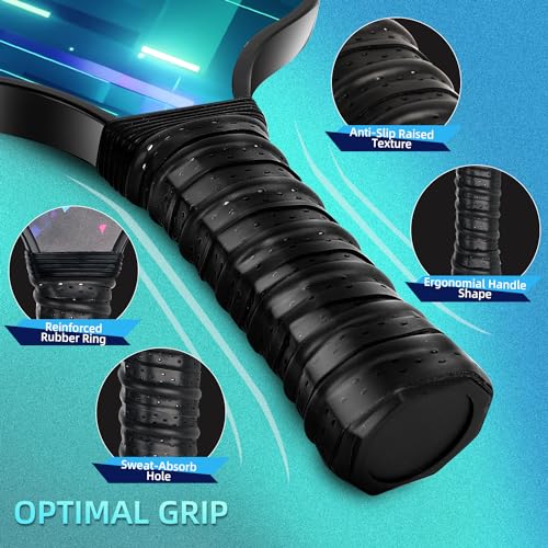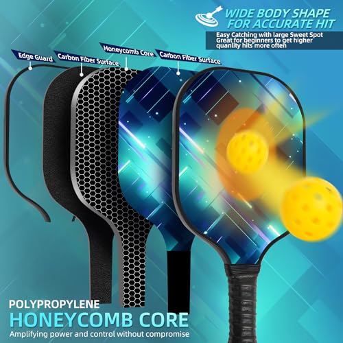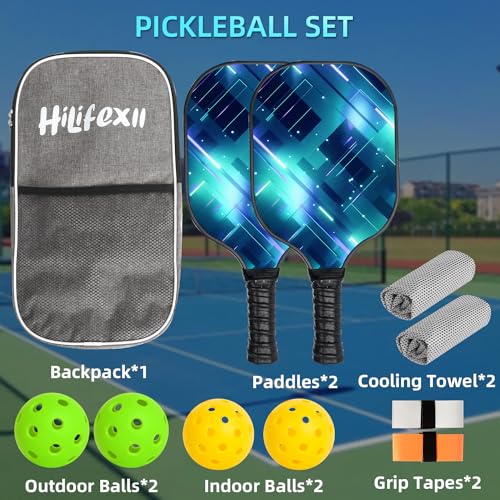 Pickleball Paddles Set of 2, Hilifexll Carbon Fiber Surface Pickleball Rackets, Polypropylene Honeycomb Core, Anti-Slip Sweat-Absorbing Grip, 4 Pickleball, 2 Cooling Towels, Carry Bag for Men Women