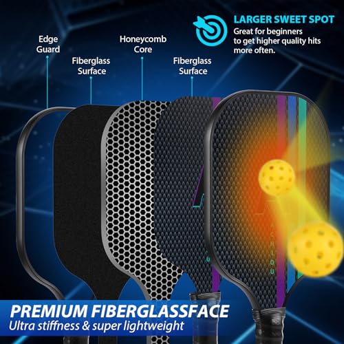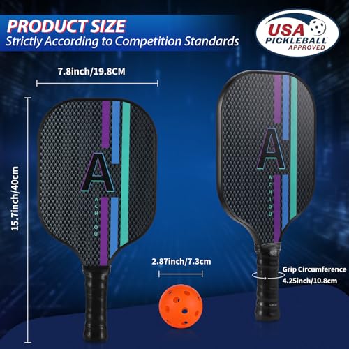 Achiou Pickleball Paddles, Pickleball Paddle Set of 2, Fiberglass Pickleball Rackets, USAPA Approved, 2 Outdoor Pickleball Balls & 2 Indoor Balls, Lightweight Carry Bag, Gifts for Men Women