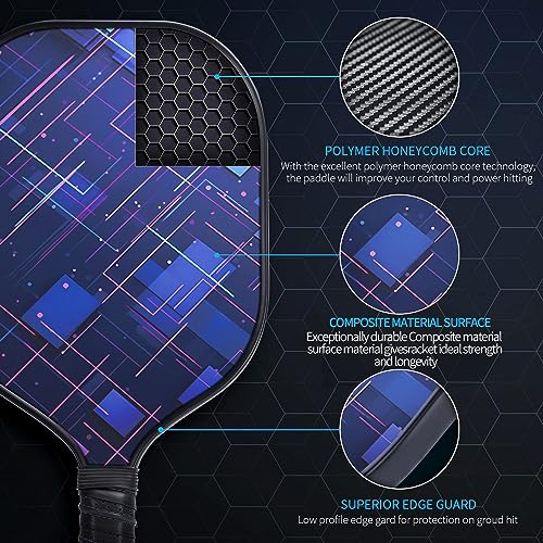- 【Premium quality pickleball paddles】The pickleball paddles set is specially crafted using innovative fiberglass and polypropylene honeycomb core technology. This design ensures outstanding power and control during gameplay. By incorporating polypropylene honeycomb technology, it effectively minimizes vibration and maintains a consistent speed, enhancing the overall feel of striking the ball. Additionally, the fiberglass surface delivers exceptional rotational performance. With its lightweight ye