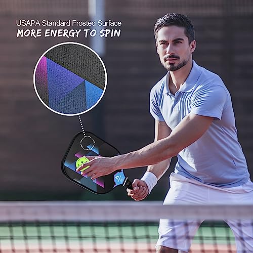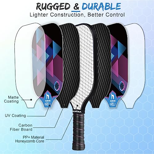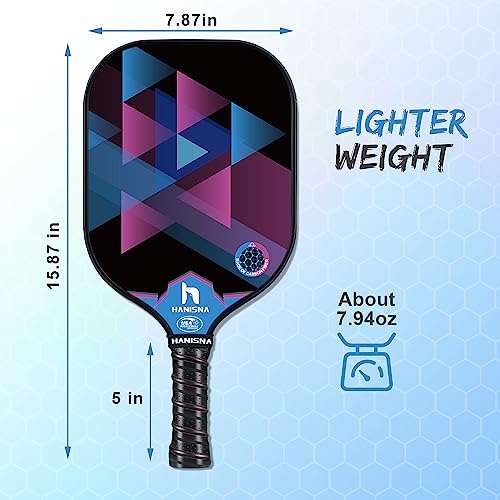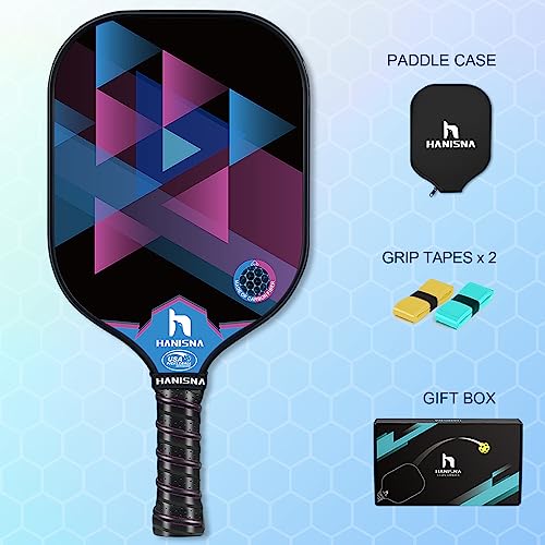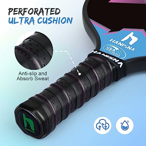 HANISNA Pickleball Paddle with Carbon Fiber Face, Polymer Honeycomb Core Lightweight, Pickle Ball Raquette Perforated Cushion Grip, Pickleball Racket with Balls Indoor & Outdoor