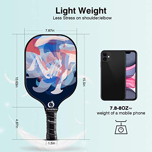 niupipo Pickleball Paddles, Pickleball Paddles Set of 2, Fiberglass Surface, Polypropylene Honeycomb Core, Cushion Grip, Lightweight Pickleball, Portable Carry Bag, Blue