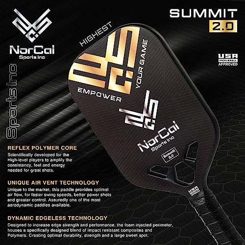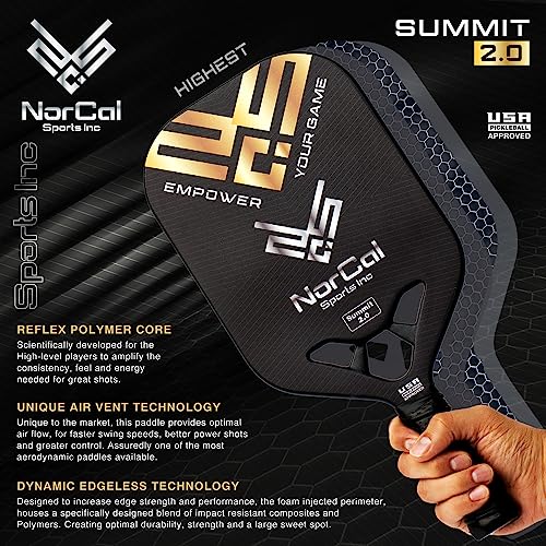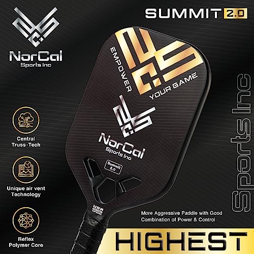 Norcal Sports Summit 2.0 Graphite Carbon Fiber Pickleball Paddle | USAPA Approved | Pickle Ball Rackets for Adults | Unique Design, Great for USA Pickleball Tournament Players