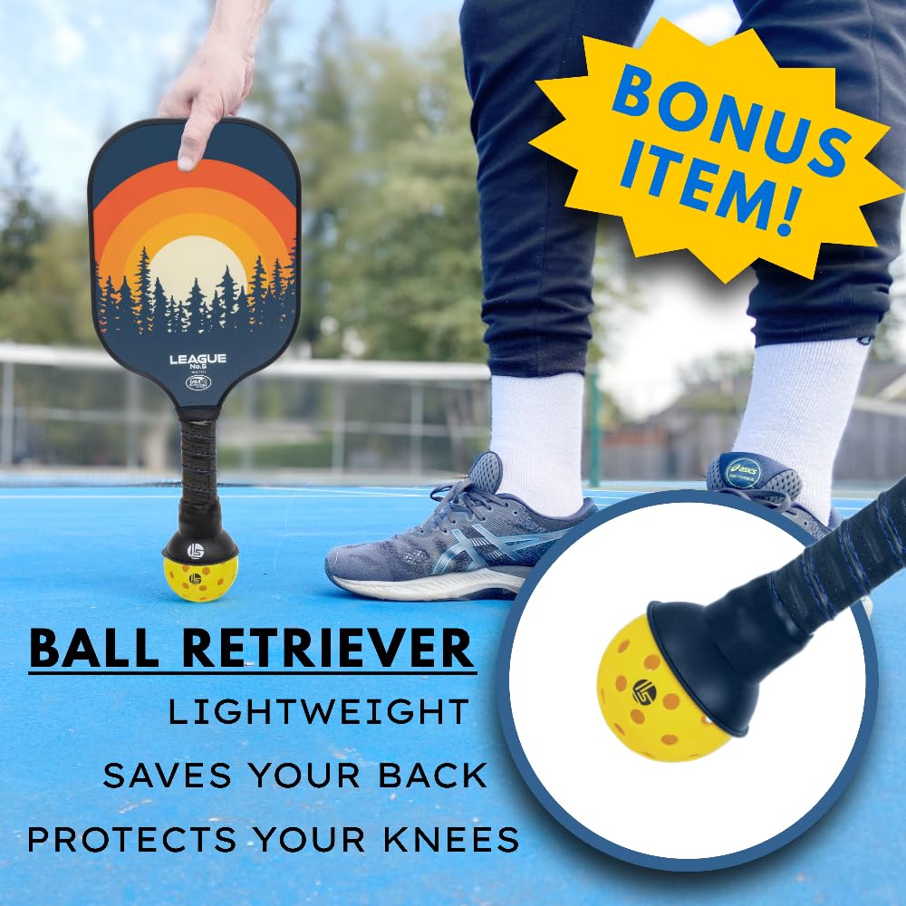 - {Functionally Easier Playing} Along with our set, we have included two handy “back-saving” ball retrievers. Tired of bending down after every rally? Our ball retrievers fit snugly onto the end of your paddle’s handle, making scooping up balls easy, while staying out of your way during play. Your back will thank us!