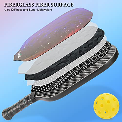 Pickleball Rackets Paddles, Fiberglass Surface Pickle Ball Rackets Set of 2, USAPA Approved, with 4 Balls,1 Pickleball Bag Racquet for Men and Women
