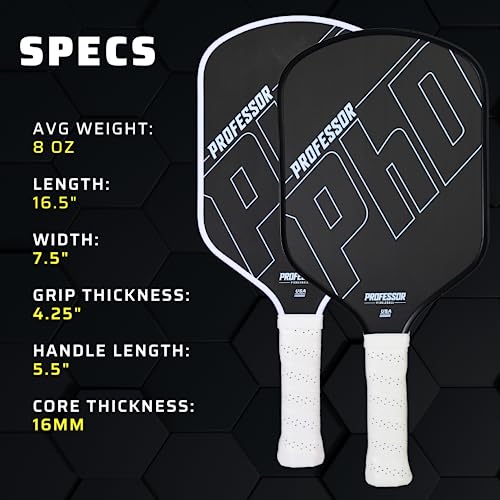 Professor PhD Raw Carbon Fiber Pickleball Paddle - White Edge
