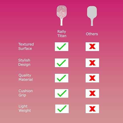 Rally Titan Pickleball Paddles for Men and Women | Textured Carbon Fiber Surface | Polypropylene Honeycomb Composite Core | Cushion Grip | Single Paddle with Cover | Pink