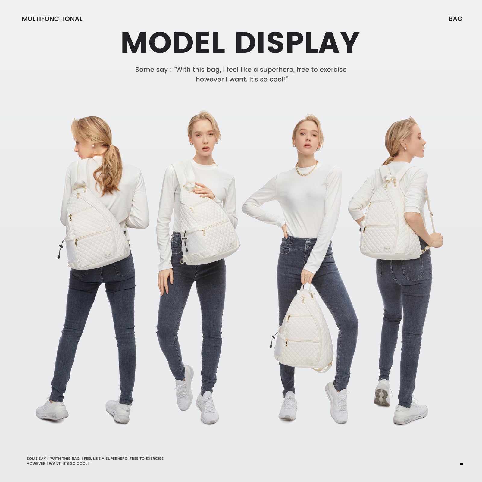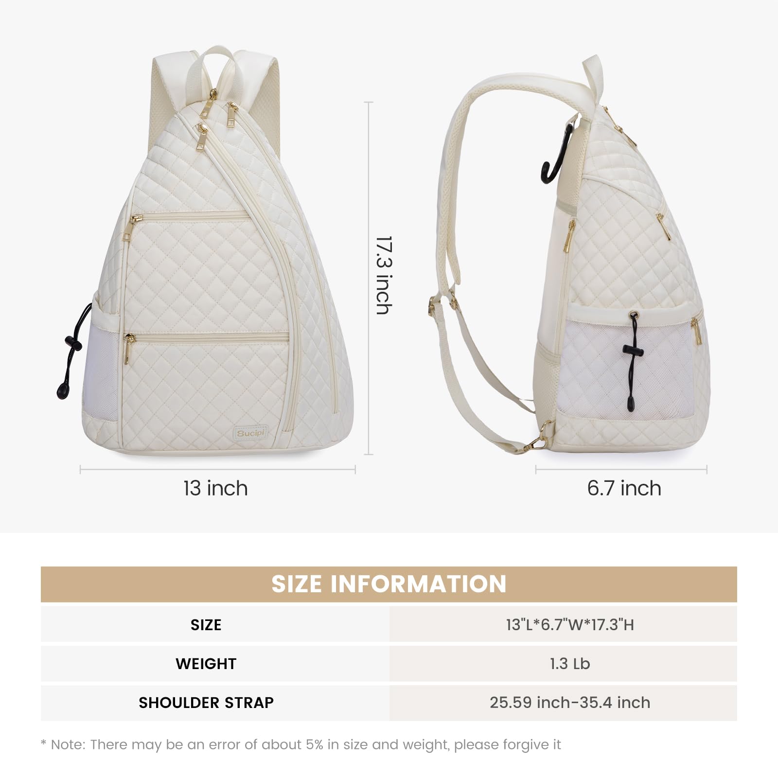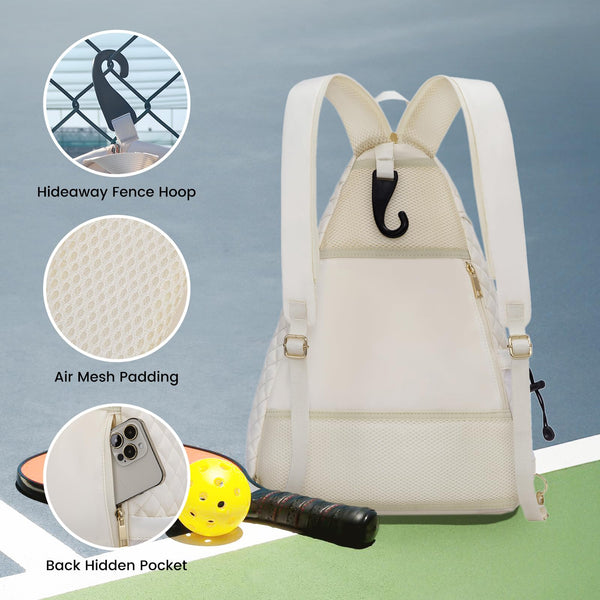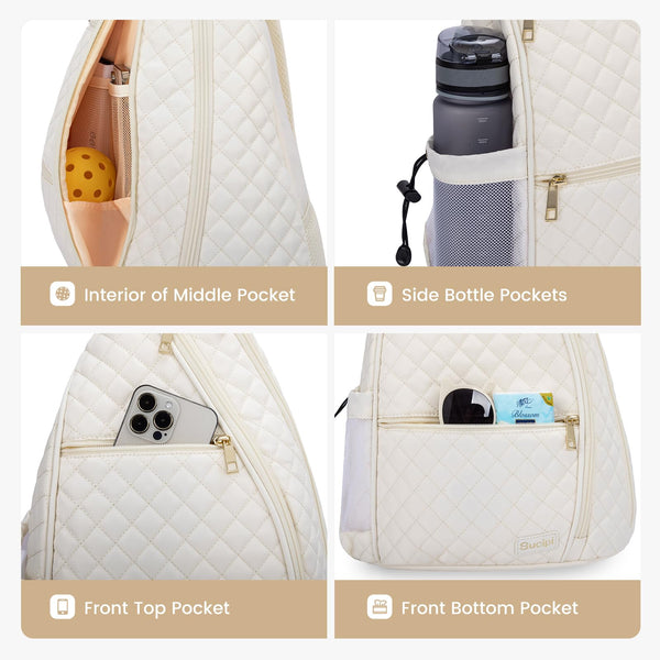 Sucipi Pickleball Bag for Women, Pickleball Backpack with Fence Hook Reversible Quilted Crossbody Sling Bag Tennis Bag Backpack Pickle Ball Paddle Bag-Holds Paddles, Pickleballs Accessories