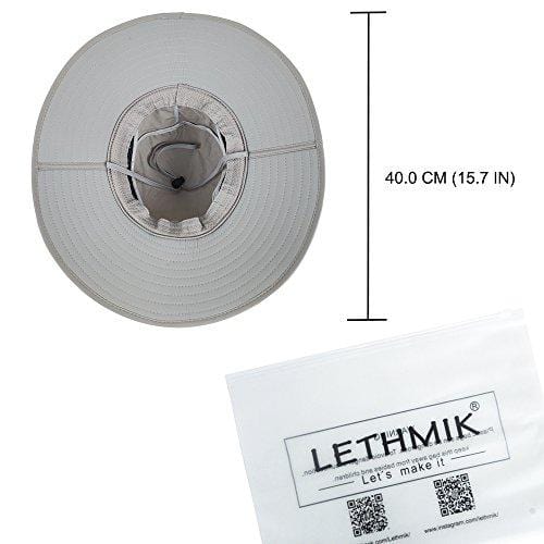 - LETHMIK Outdoor Waterproof Fishing Hat, Summer UV Protection Breathable Boonie Hat Hunting Safari Sun Hat; Unisex Snug and Cosy Fit. Hat size available from 7-7 5/8 (22-24 inches), Adjustable chin drawstring design, One size fits most adults head size. High quality Polyester and stitching process. Item weight 3.9 OZ, UPF 50+ excellent sun protection. Please Do Not Machine Wash or Brush Wash.