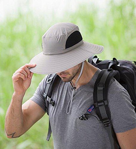 - PRACTICAL & BEAUTIFUL - This sun hat is equipped with an adjustable Wind Strap, this adjustable chin drawstring can hold the hat in place on windy days; Breathable Mesh Fabric Hat Crown design on Each side of the hat. High Performance Waterproof Material - Ideal for wearing in outdoors. It is a perfect hat for hiking, camping, fishing, tourism, gardening, beach, pool, park, race day events or any outdoor sports and activities.