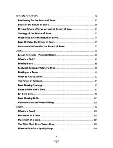 Details: My Pro Pickleball Coach is a platform created by Pickler to help you play your best pickleball. Pickler has teamed up with pickleball pro and pickleball coach, Steve Kennedy, to bring you My Pro Pickleball Coach, which features a compilation of over 140 video lessons (or over 7 hours of lessons!), as well as a corresponding e-book, that breaks down every aspect of the sport of pickleball, including pickleball mechanics, fundamentals, strategy, advanced concepts, and drills. Unlike other videos on the web, My Pro Pickleball Coach is organized for you in one place, has one consistent message from start to finish, touches on every aspect of the game, and is taught by the best in the coaching business! Learn to play your best pickleball for a fraction of the price of one clinic with Pickler's My Pro Pickleball Coach! My Pro Pickleball Coach is designed for any pickleball player or pickleball coach that wants to improve their abilities on the court. Whether you are a beginner, a 3.0 player, or a 5.0 player, you will learn something that you can immediately apply to your pickleball game from My Pro Pickleball Coach's pickleball video lessons and pickleball e-book. To really appreciate how organized and comprehensive My Pro Pickleball Coach's pickleball videos and corresponding e-book collection are, check out the screenshots of the video and e-book table of contents in the pictures! Learn to play your best pickleball with our over 140 pickleball videos lessons NOW! For a FREE sample video, email stacie@thepickler.com!