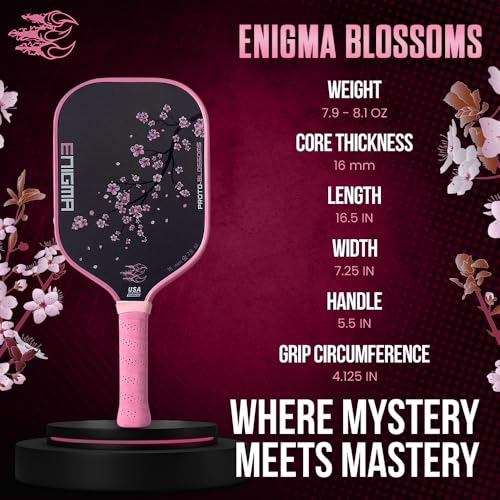 Enigma Pickleball Proto-Blossom Pickleball Paddle, Thermoformed Raw Carbon Fiber Pickleball Paddle with 16mm Honeycomb Polymer Core, Enhanced Power Control and Maximum Spin, USA Pickleball Approved