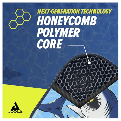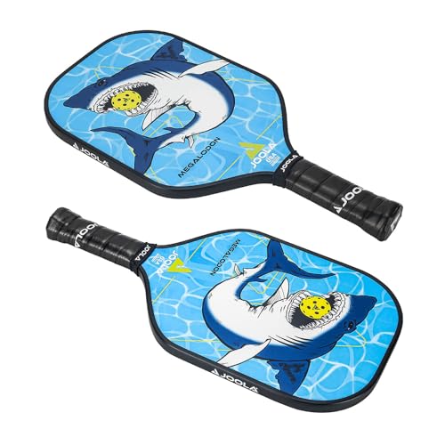 JOOLA Kids Pickleball Paddle - Megalodon Shark Edition - Youth Pickleball Paddle for Children - Lightweight Pickle Ball Racket with Small Grip, Pro Style 12mm Polymer Core & Fiberglass Face