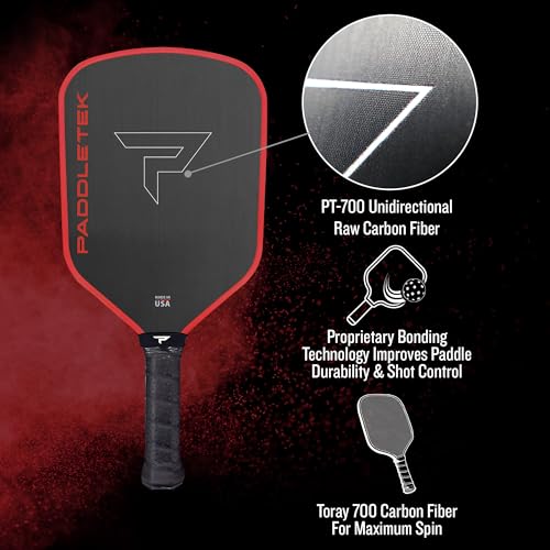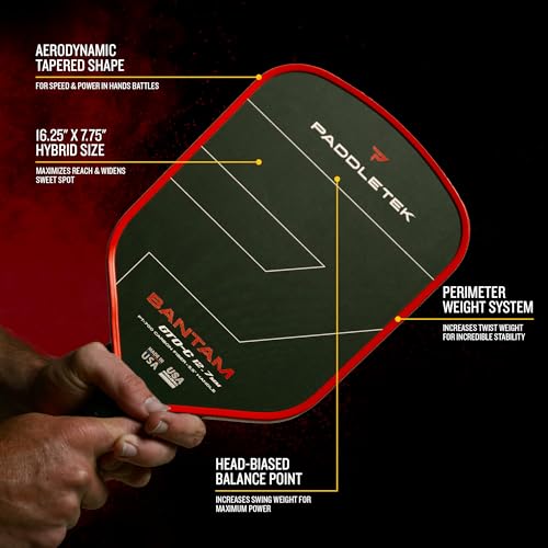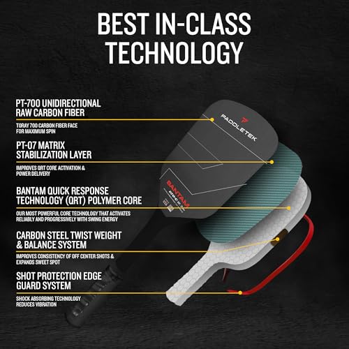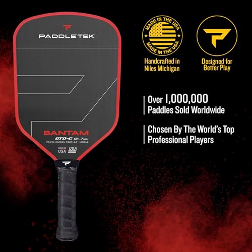 Paddletek Bantam GTO-C 12.7mm Hybrid Pickleball Paddle – Raw Carbon Fiber Face – Aerodynamic Tapered Shape – Polymer Core – 16.25" x 7.75" – 5.5 inch Handle – UPA-A & PBCoR .43 Certified – Made in USA