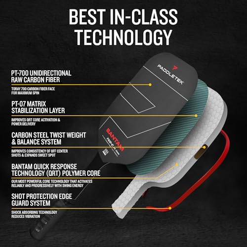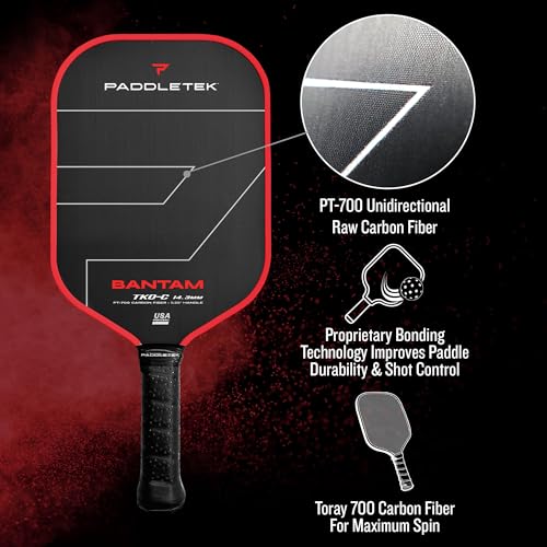 Paddletek Bantam TKO-C 14.3mm Pickleball Paddles with Polymer Honeycomb Core - Unidirectional Carbon Fiber – Torsional Weighting & High Tack Performance Grip - USAPA Approved - 5.25 Inch Handle