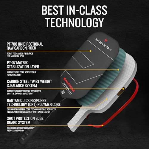Paddletek Bantam TKO-CX 14.3mm Pickleball Paddles with Polymer Honeycomb Core - Unidirectional Carbon Fiber – Torsional Weighting & High Tack Performance Grip - USAPA Approved - 5.75 Inch Handle