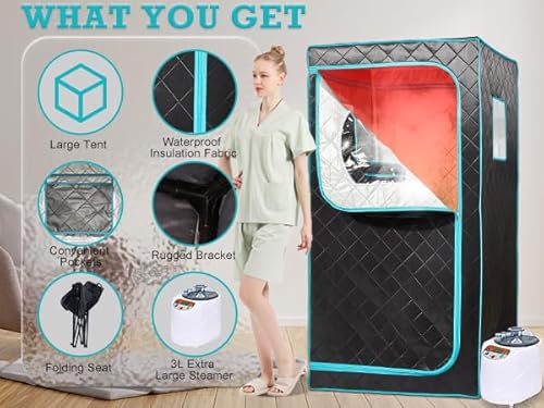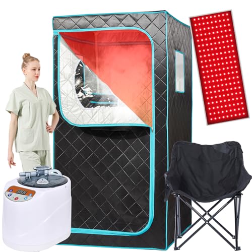 AURGOD Portable Steam Sauna– Red Light Therapy Home Sauna Tent with 3L & 1500W Steamer, Remote Control Time & Temperature Settings, Foldable Chair Included for Relaxation