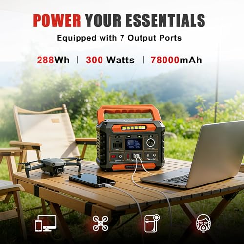 AWELTEC Portable Power Station 300W,78000Mah(288Wh) Lightweight Compact Solar Generator with AC DC USB Outlet,LED Light,Pass-Through Charging for Camping,Travel,Outdoors,Home Blackout