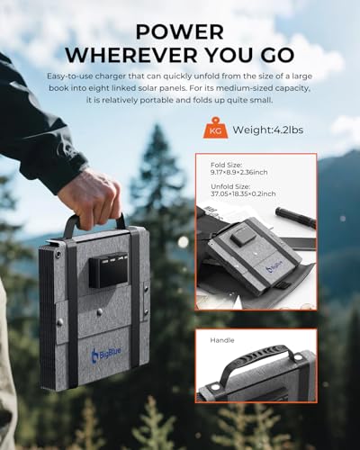 BigBlue 60W Portable Compact Solar Panel with PD 45W USB-C, 20W USB-A, DC Ports for Power Stations, Cellphones, Power Banks, Tablets, IP68 Waterproof, Foldable Camping Solar Charger with Kickstand