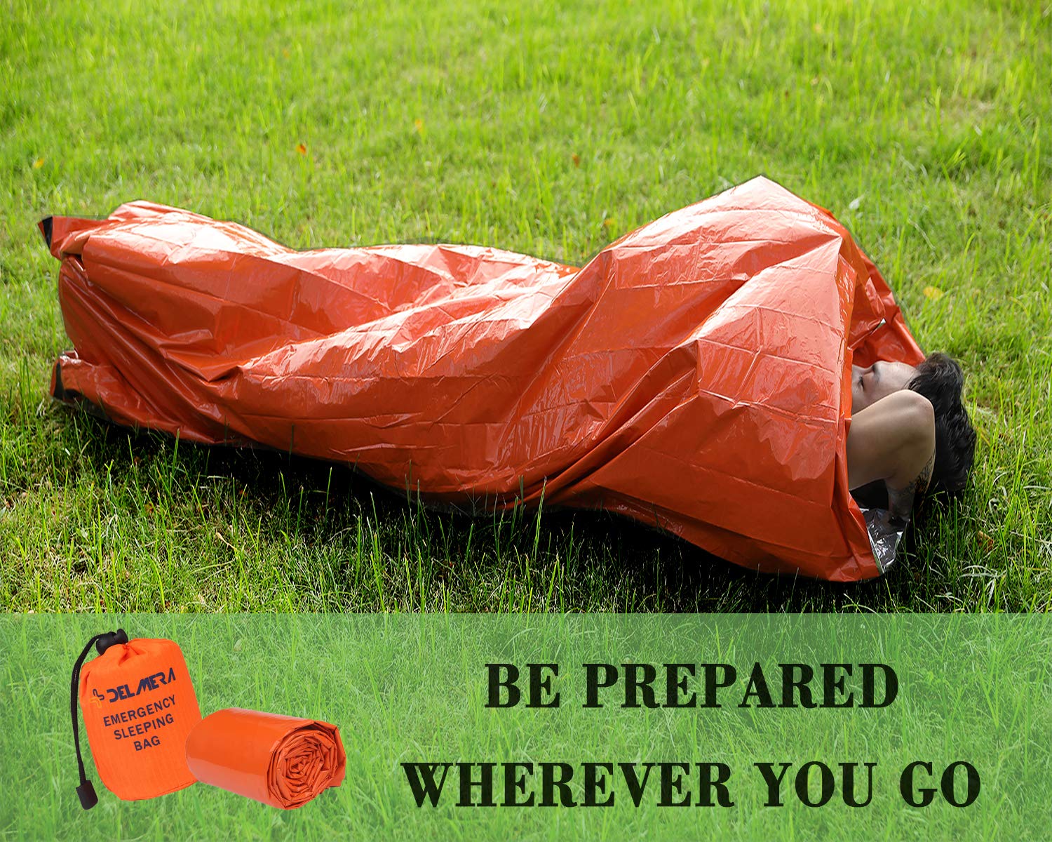 - EMERGENCY USE AND EXTRA-THICK TEAR-Delmera Emergency Thermal Mylar Bags are ideal for all emergencies. They can be used to prevent and counter hypothermia by reducing heat loss from a person's body, to cover injured victims in order to help reduce shock. Your ultra-lightweight survival sleeping bag is constructed of 26um extra-thick mylar material with a tear and puncture resistant coating so it stands up to extreme conditions
