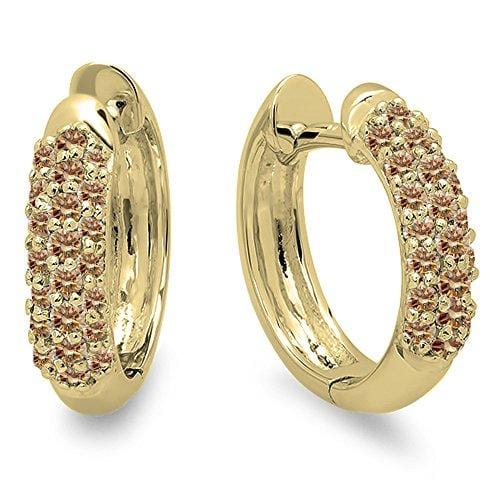 Dazzlingrock Collection 0.30 Carat (ctw) 14K Round Champagne Diamond Ladies Huggies Hoop Earrings 1/3 CT, Yellow Gold