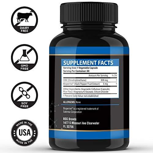 - TWO MONTH SUPPLY: Each bottle includes 60 veggie capsules for a full 2 month supply of super-absorbable diindolylmethane. Be careful of other brands that offer lower doses (100mg, 200mg, or 250mg) but claim to have longer supplies.