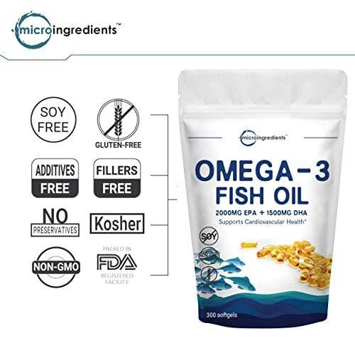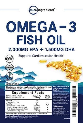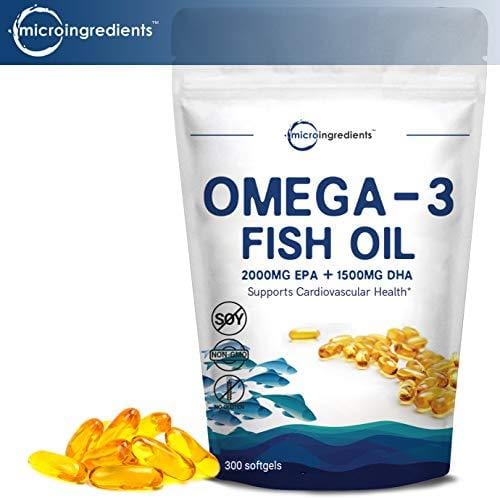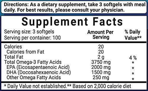 Triple Strength Omega-3 Fish Oil, 3750mg Per Serving, 300 Softgels, High EPA 2000mg | DHA 1500mg, Strongly Supports Cognitive Health and Cardiovascular Function, Non-GMO and Made in USA