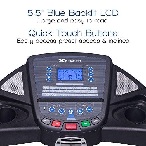 - Large 5.5 inch blue backlit LCD display is easy to read and keeps you updated on all the necessary information (speed, incline, time, distance, calories and Pulse)