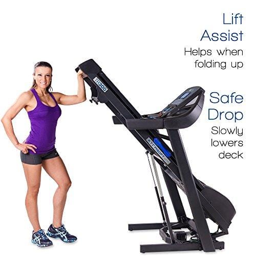 Designed with ease of use features that include a large 5.5” Blue Backlit LCD display, 24 preset programs, easy folding Lift Assist frame design, and convenient handlebar controls for speed and incline.