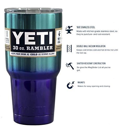 YETI Coolers 30 Ounce (30oz) (30 oz) Custom Rambler Tumbler Cup Mug Bundle with New Magslider Lid (Teal Purple Ombre)
