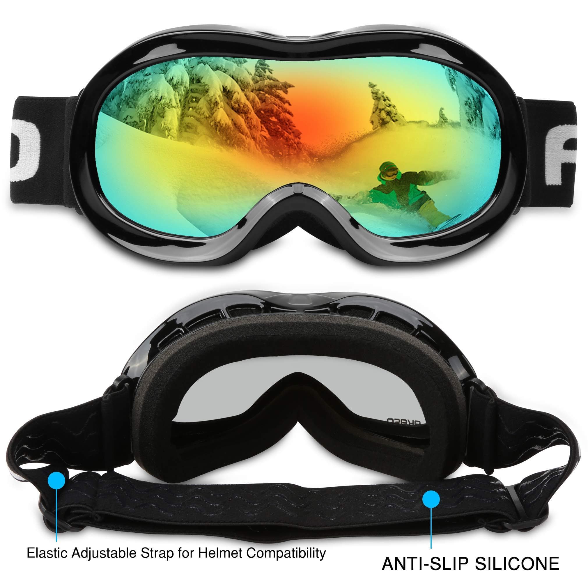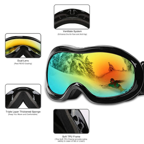 AKASO Kids Ski Goggles, Snowboard Goggles Snow Goggles for Youth, Kids & Teenagers, Anti-Fog, 100% UV Protection, Double-Layer Spherical Lenses, Helmet Compatible