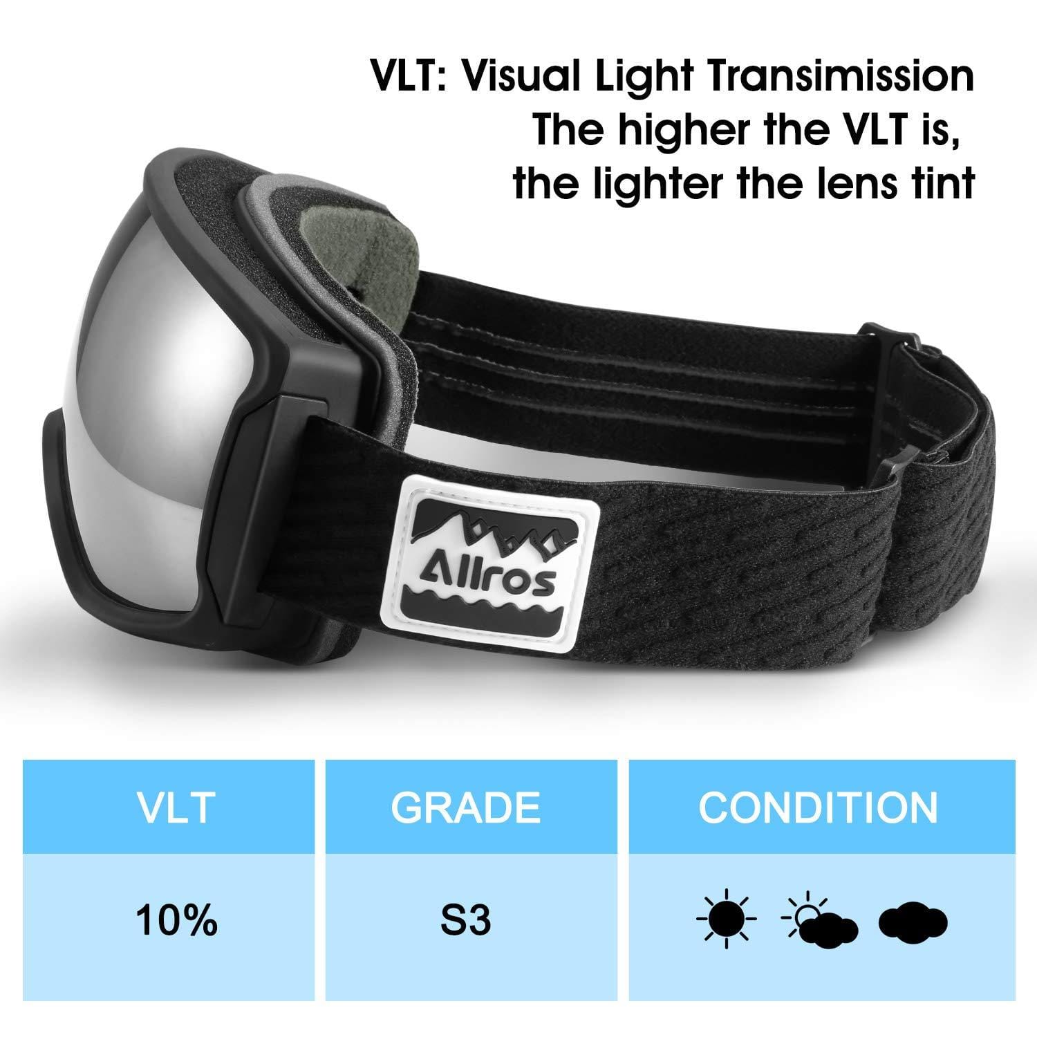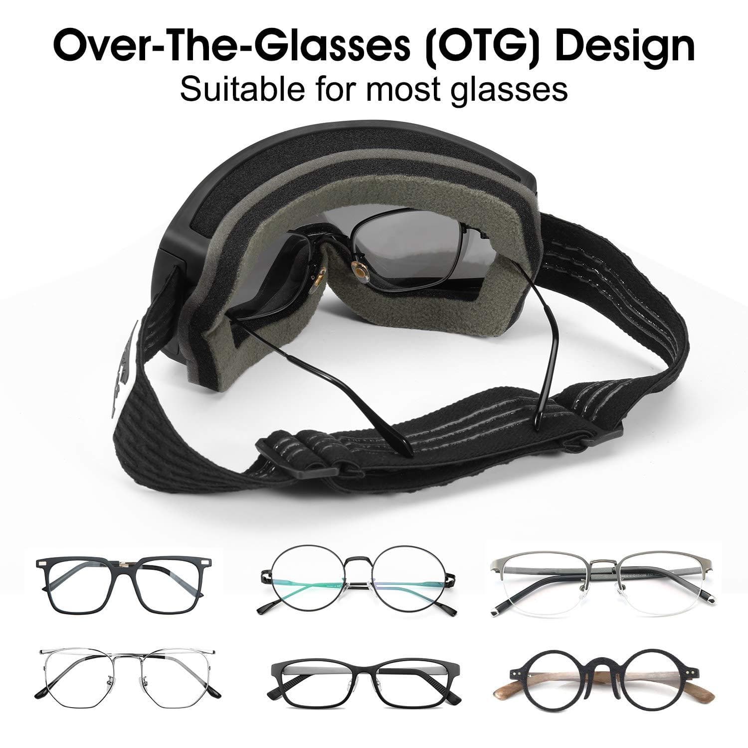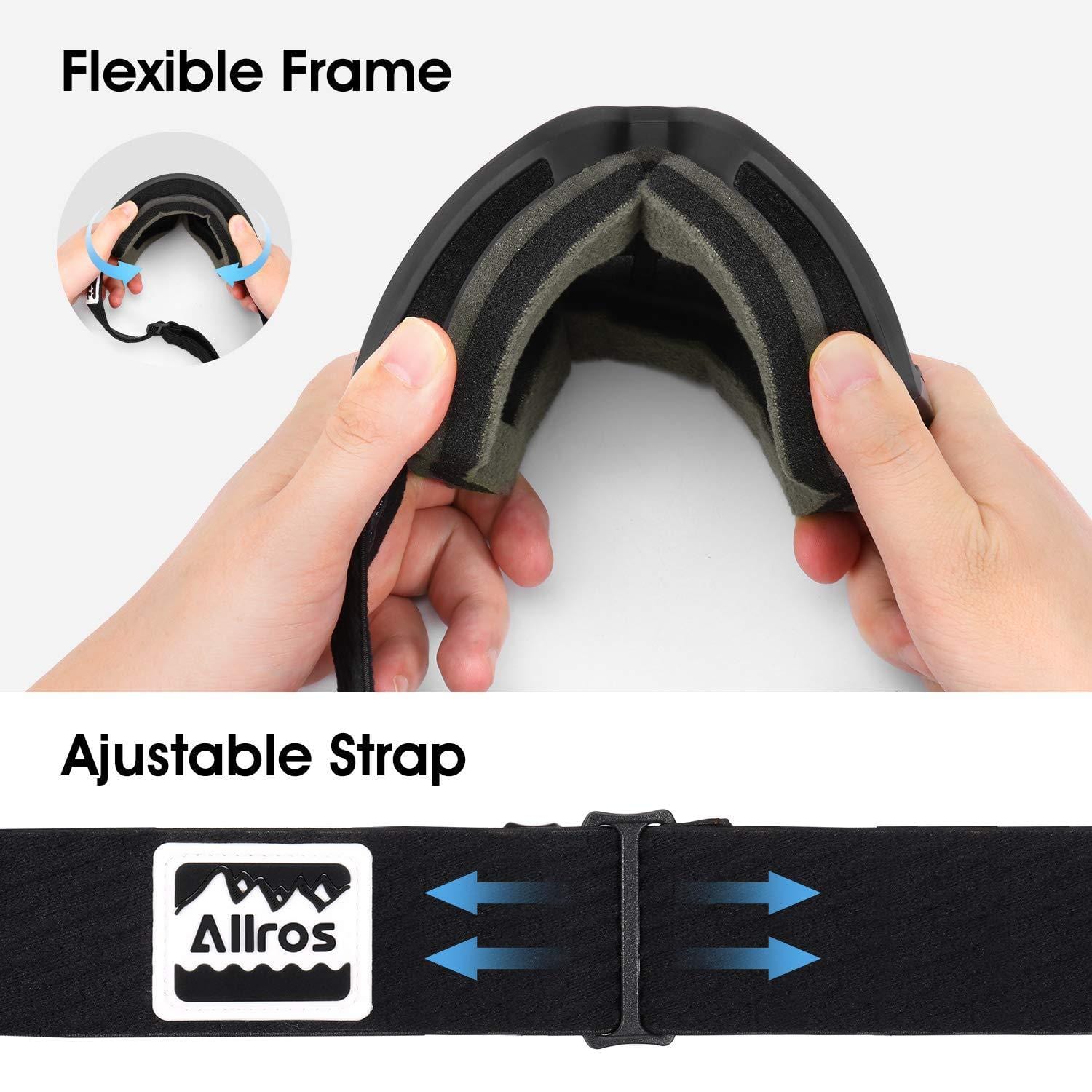 ALLROS OTG Ski Goggles Snowboard Goggles, 100% UV400 Protection Anti-Fog Lens Snow Goggles, Helmet Compatible for Men & Women