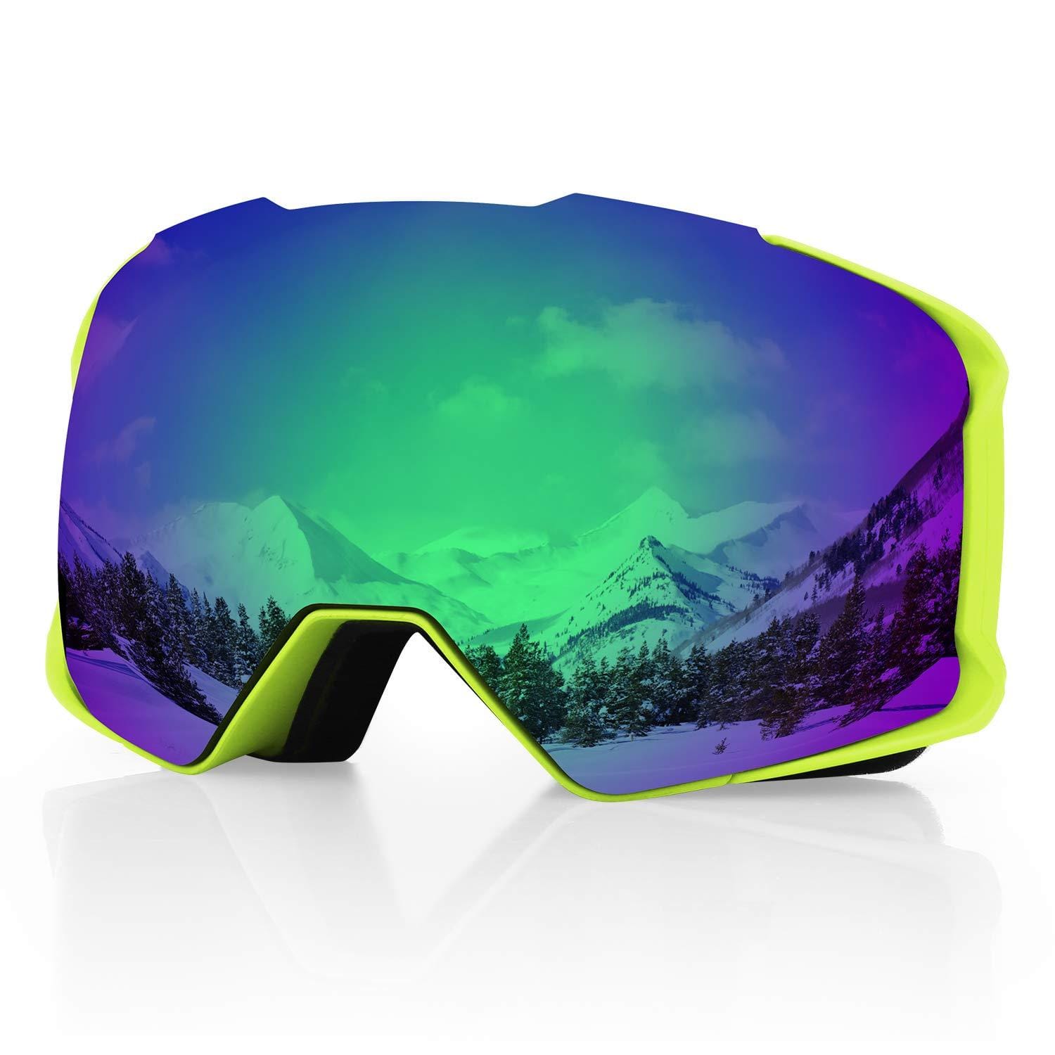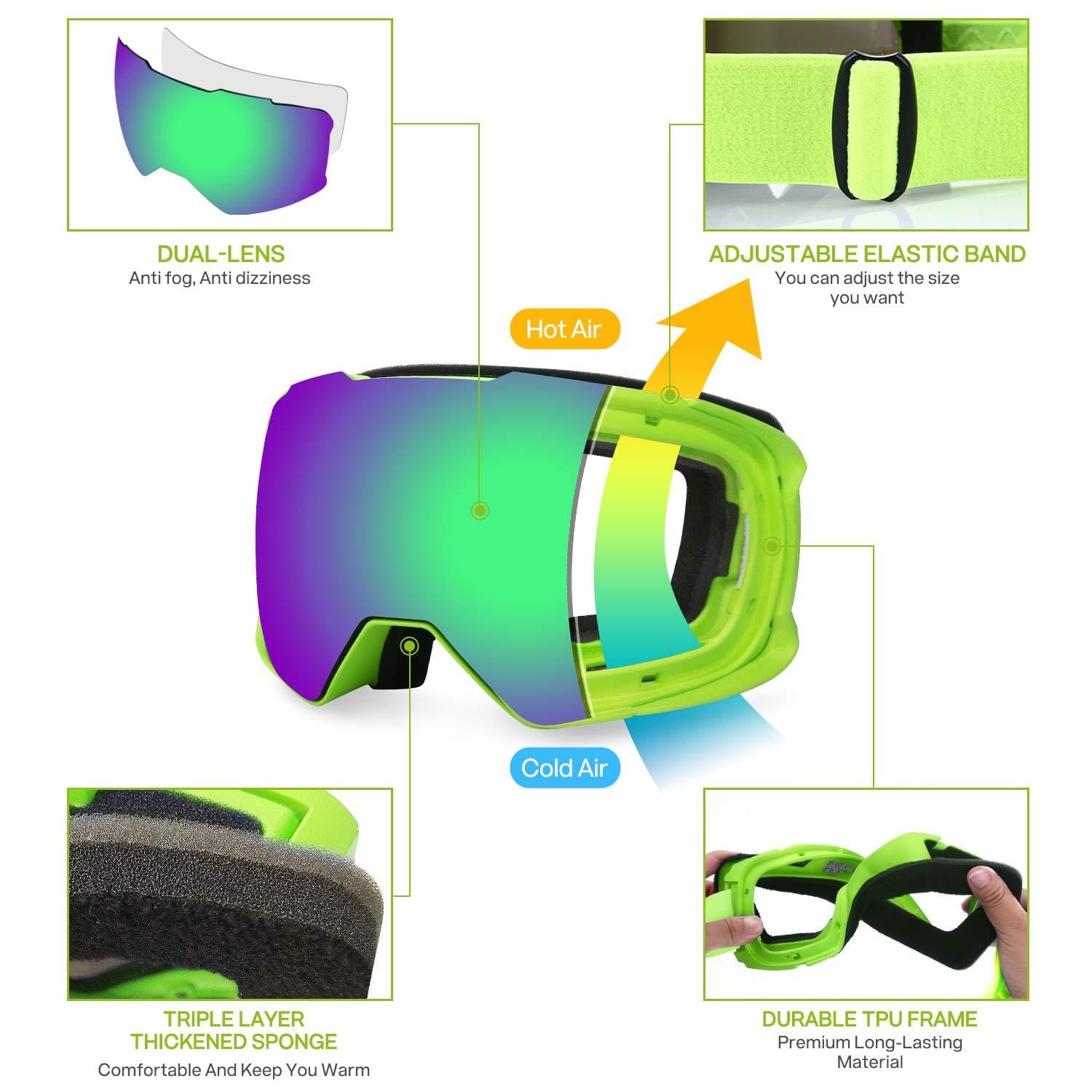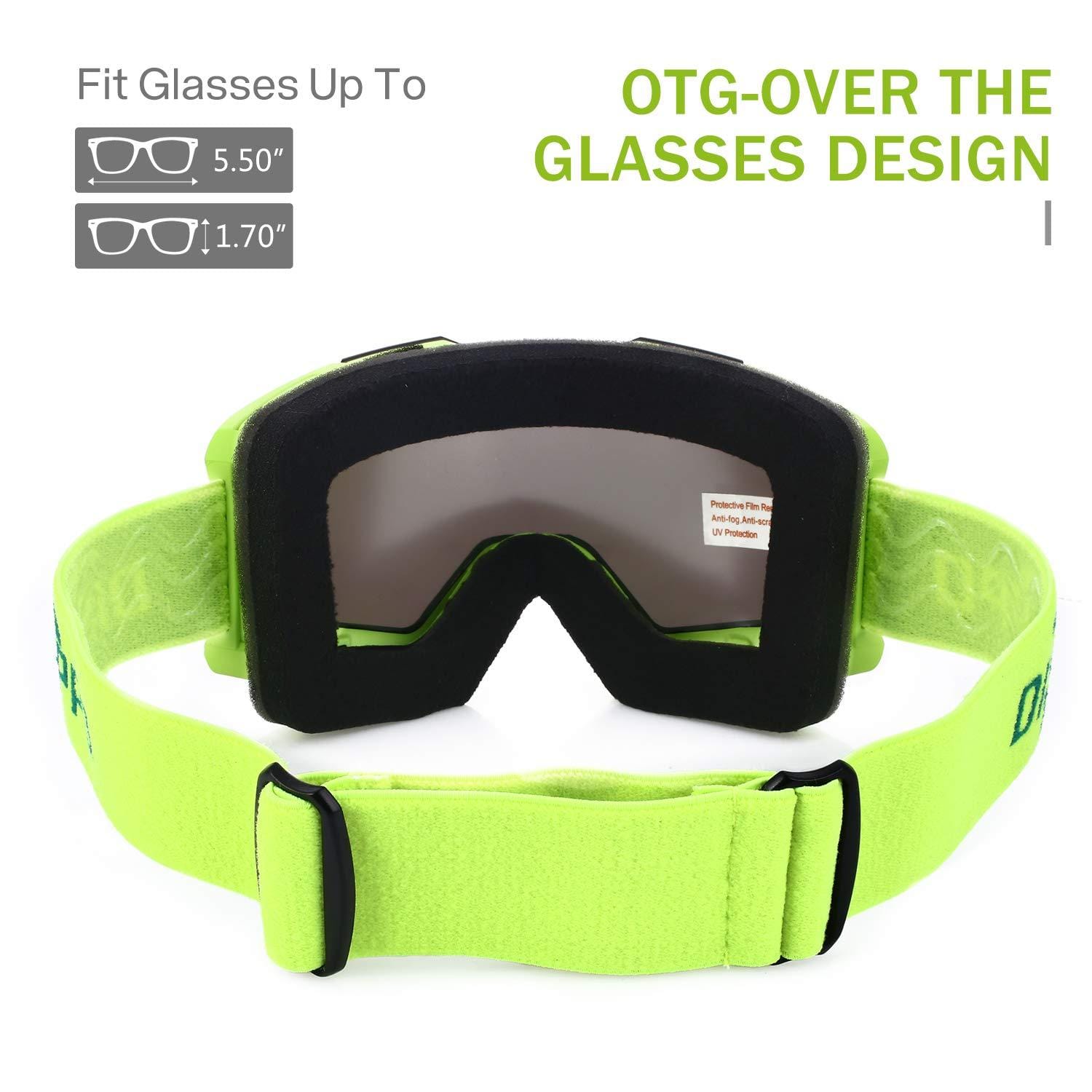 DISUPPO Ski Goggles,Skiing Goggles with Hyperboloid Anti-Fog Dual Lens,100% UV400 Protection, Windproof Impact-Resistant Anti-Glare Snowboard Goggles for Men & Women (Green)