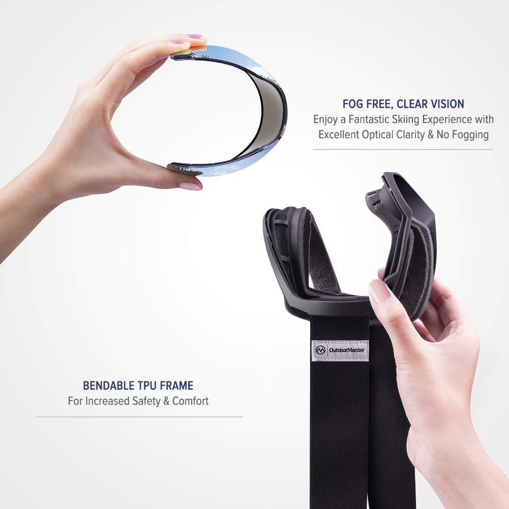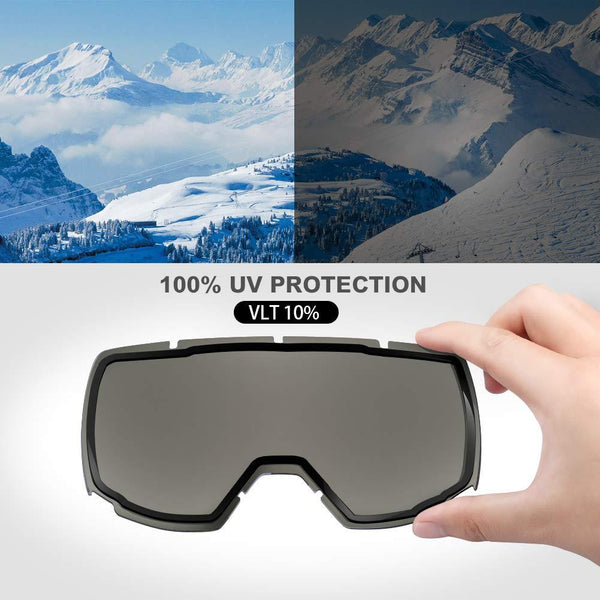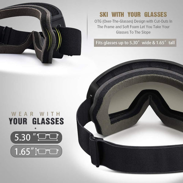 OutdoorMaster OTG Ski Goggles - Over Glasses Ski/Snowboard Goggles for Men, Women & Youth - 100% UV Protection (Black Frame + VLT 10.1% Grey Lens)