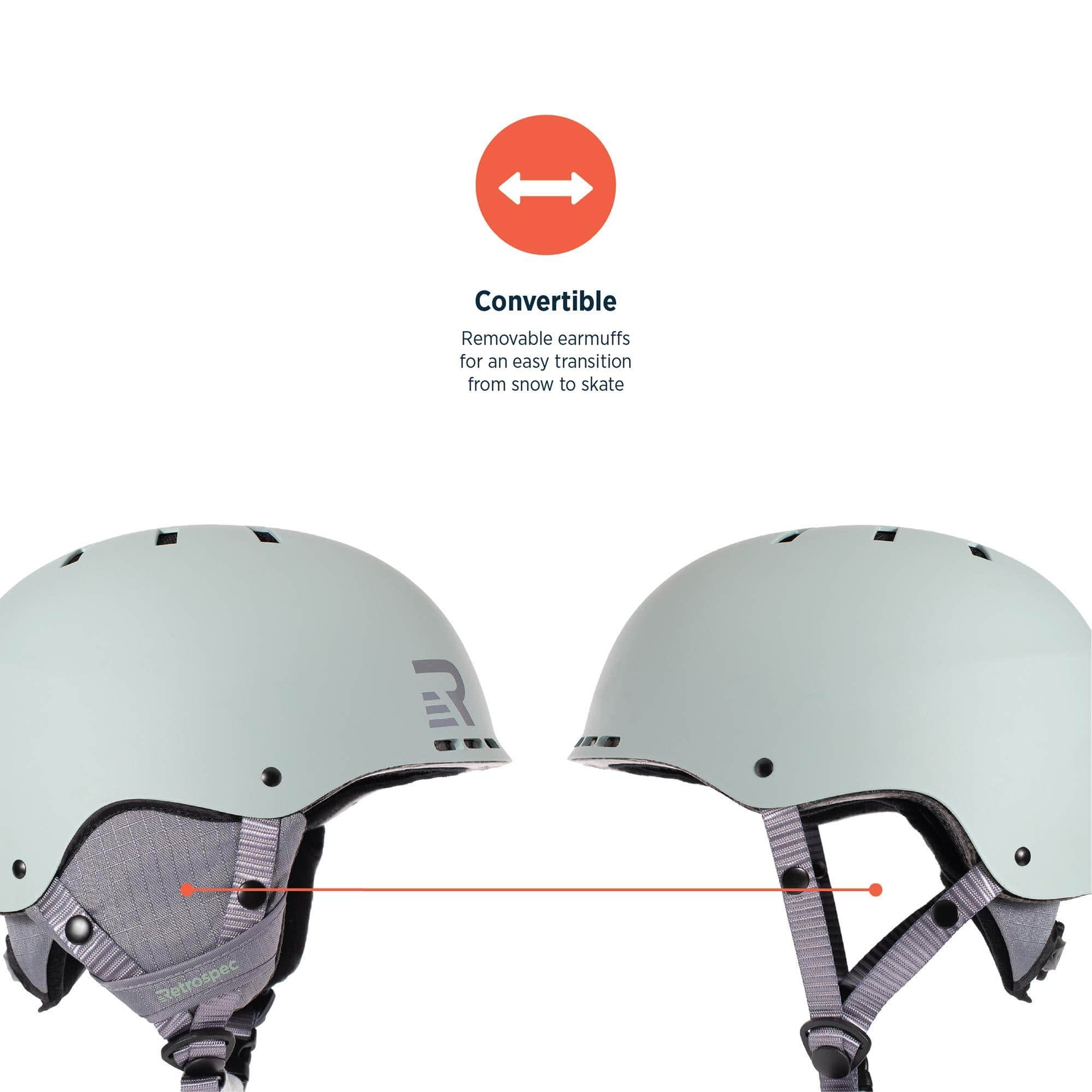 Details: There are few things as versatile as the Retrospec Traverse H2 helmet. Shred the slopes in our fully formed, lightweight helmet. It’s certified with an ABS exterior and an EPS interior. The front mini visor is shaped to accommodate ski goggles and there’s a clip on the back to secure them. The inside is lined with a fleece netted cap to wick away moisture and keep you warm. The mesh material improves ventilation throughout the helmet while the embroidered logo is just there to look fancy. The earmuffs are warm, protective, and removable and have a zipper pocket for headphones. The traverse H2 helmet has 14 vents: 6 on the top, 6 in the front, and 2 in the back. The vents are designed to keep you dry and your body temperature regular. There are two additional layers inside of this helmet. A wire mesh provides more structure while a cloth mesh helps to transfer and evaporate sweat. This helmet is easily customizable for a perfect fit. Turn the red adjustable dial clockwise (all the way to 11! ) to tighten and turn it counterclockwise (all the way to 1?) to loosen. The chinstrap is also adjustable and has a super soft cushion, so you won’t get chafed. Be smart, be safe, and be comfortable. But wait! There’s more! Convert this Snow helmet into a skate/bicycle helmet in a matter of seconds. Remember how we said those earmuffs are removable? Simply unsnap them, remove the fleece netted cap, and install the foam padding. 2-In-1. See? We weren’t kidding about this being the ultimate helmet.
