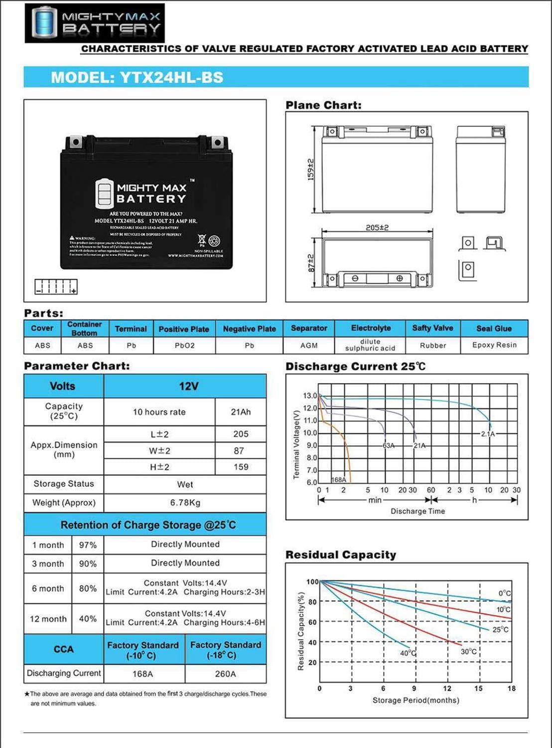 Mighty Max Battery YTX24HL-BS 12V 21AH SLA Battery for Arctic Cat Prowler 650 2006-2010 Brand Product