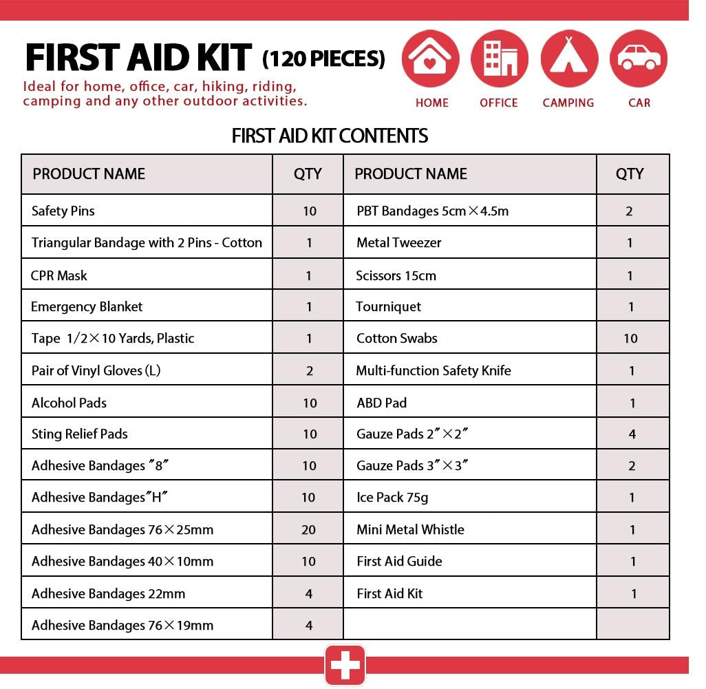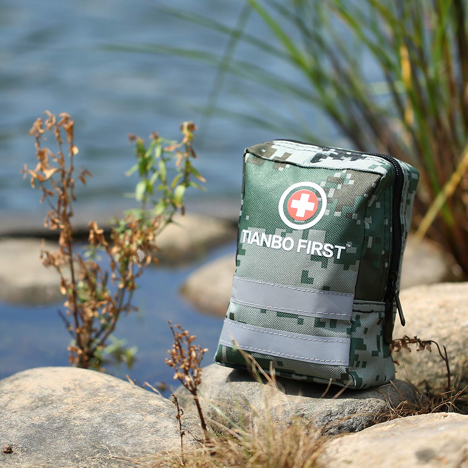 120 Pieces First Aid Kit, Tactical Trauma Kit Reflective Stripe, Great for Camping, Survival, Hiking, Rescue Camouflage