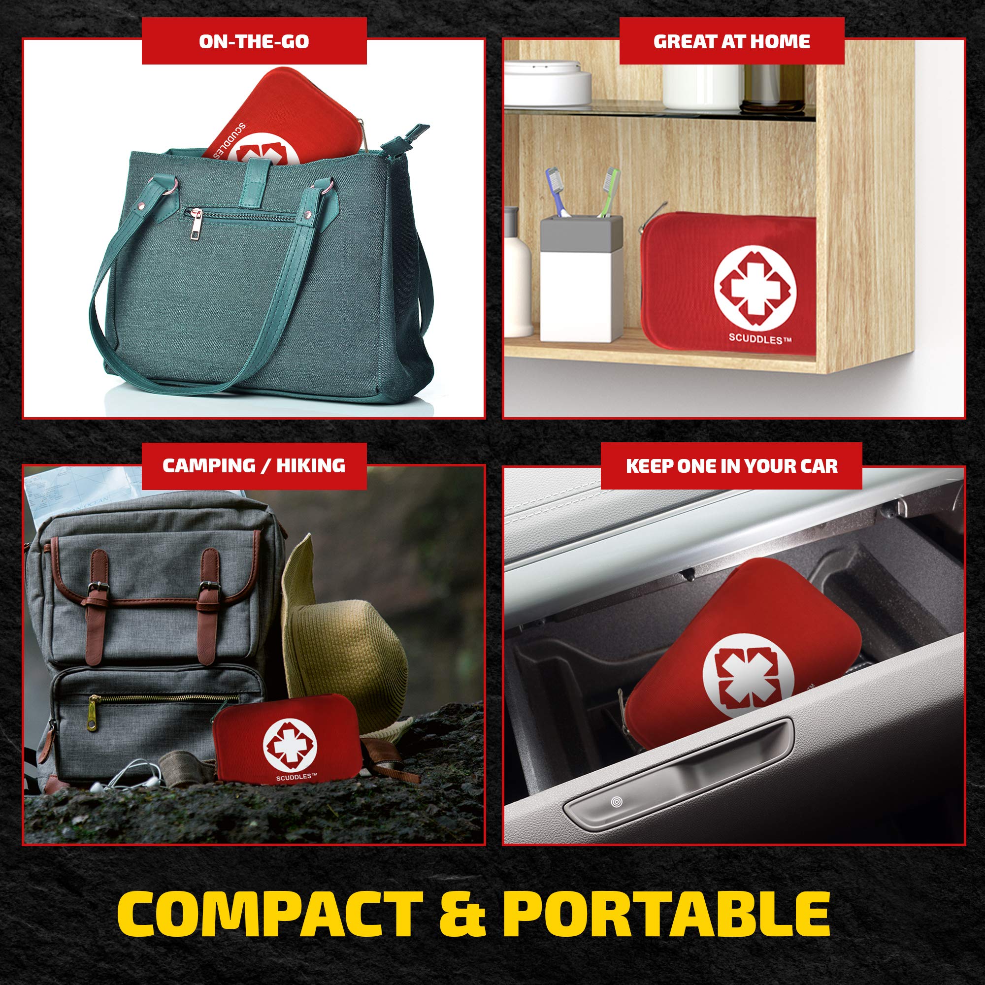 • πŸ”° π’π“π€π˜ ππ‘πŽπ“π„π‚π“π„πƒ- Scuddles First Aid Travel Kit is a premium compact medical kit that ensures that you have everything you need in case of any emergency or trauma. With our extensive assortment of high-quality emergency first aid products you will have everything you need to sanitize and be in control of all sorts of wounds, reducing and preventing wound infections.
