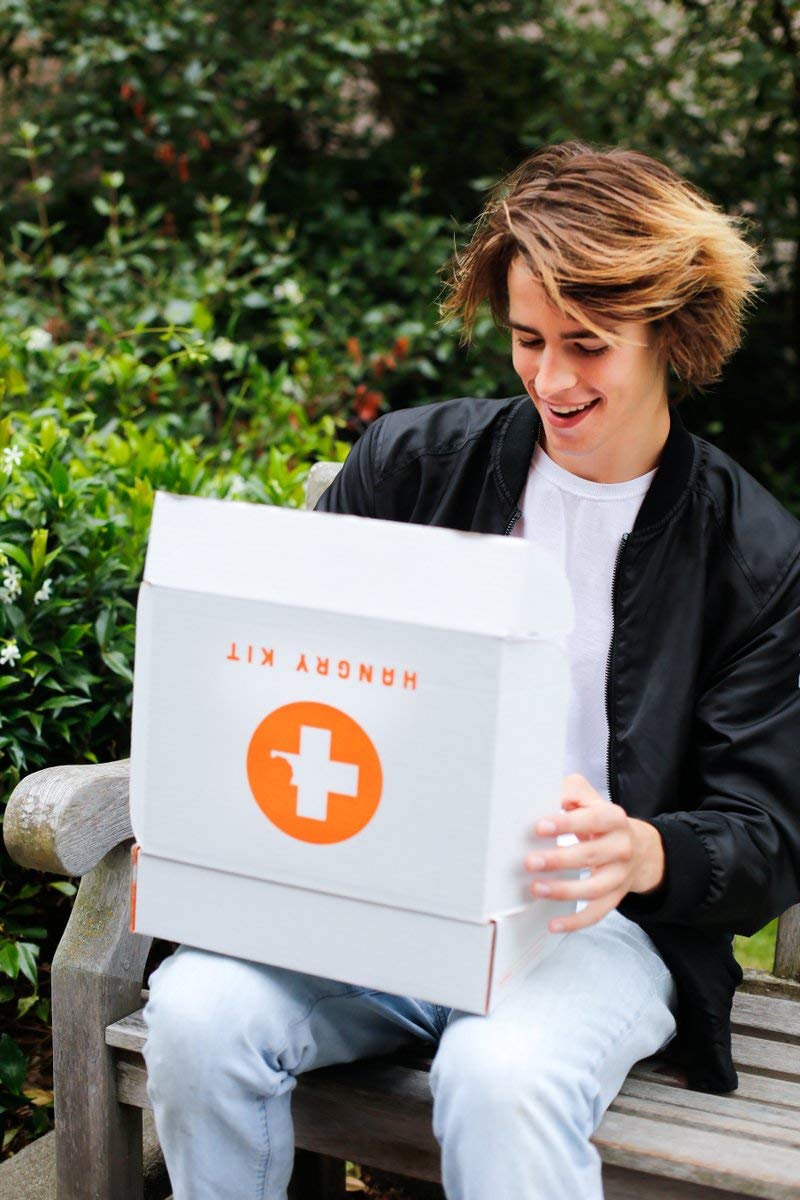 - GIFT BASKETS FOR EVERYONE: Students, teens, moms, dads, bosses, teachers, military, and others could use a Hangry Kit. Take it on the plane, train, or on the road. This emergency food kit will be the gift that anyone would want to get. Bring a smile to their faces with this unique, one-of-a-kind food chest. From sweet to salty snacks, your kids will love getting these surprises in their lunch.