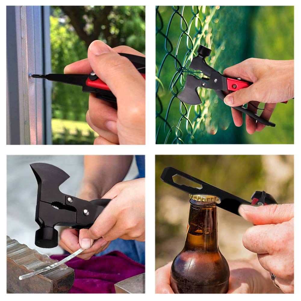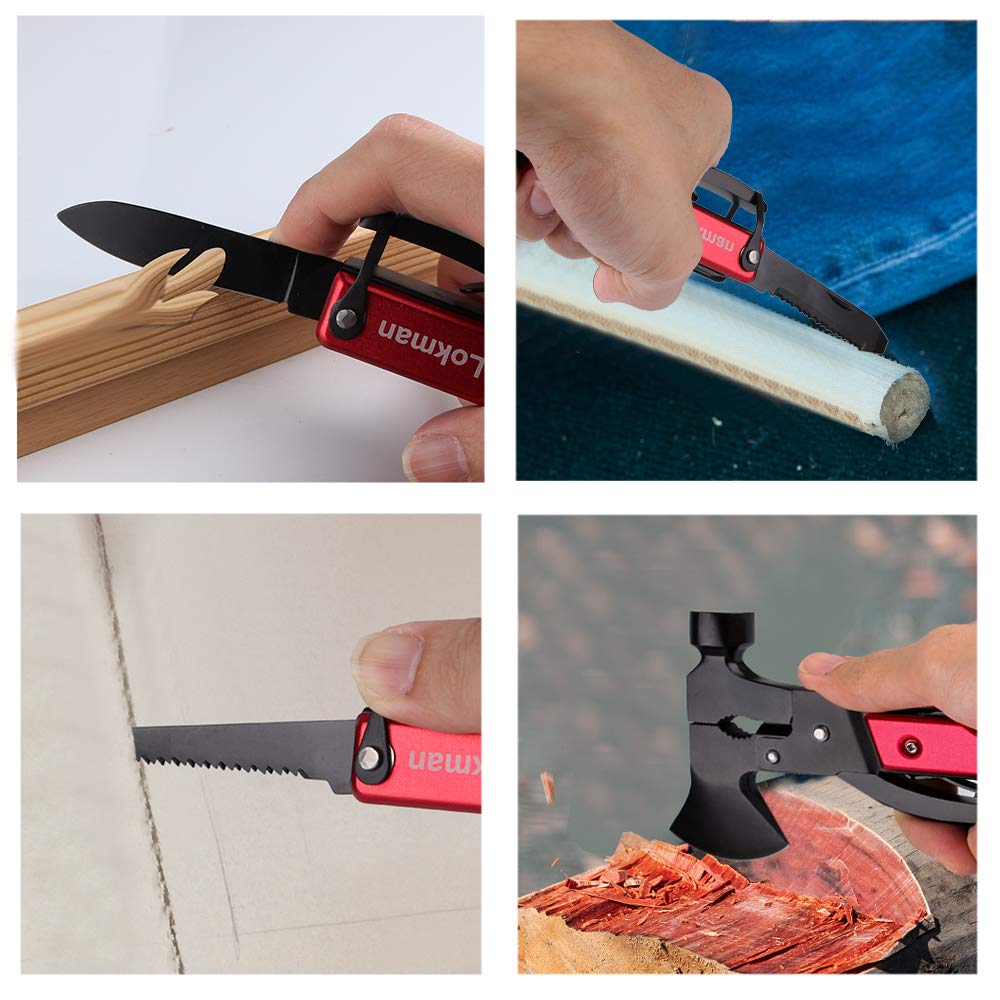 LOKMAN 14 in 1 Stainless Steel Multitool for Camping, Survival Kit, Outdoors, Car Emergency with Hammer, Axe, Knife, Plier, Screwdrivers,Wrench, Bottle Opener+ - Thanks Giving Gift for Father