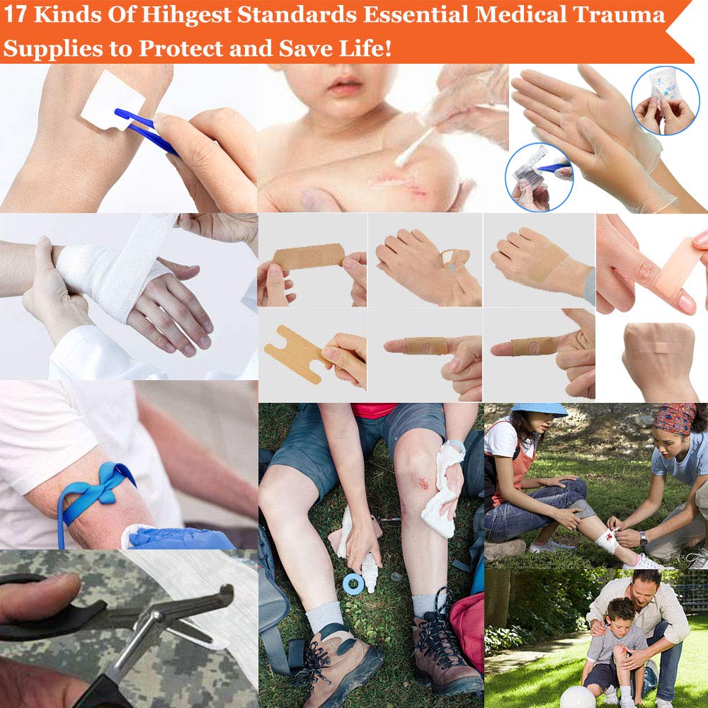 Monoki First Aid Survival Kit, 302Pcs Tactical Molle EMT IFAK Pouch Outdoor Gear EDC Emergency Survival Kits First Aid Kit Trauma Bag for Hiking Camping Hunting Car Travel or Adventures