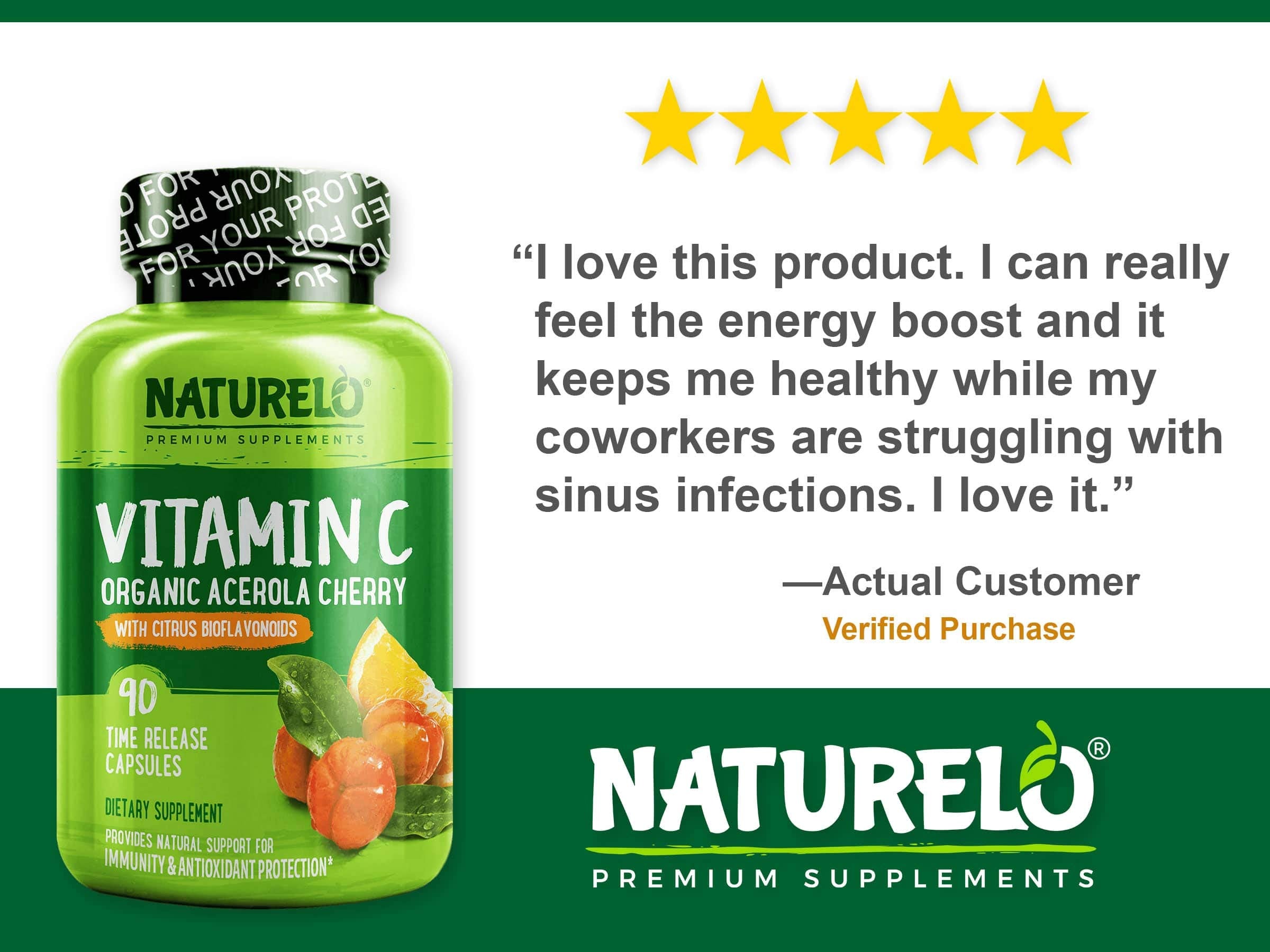 NATURELO Premium Vitamin C with Organic Acerola Cherry and Citrus Bioflavonoids - Whole Food Powder Supplement - Not Synthetic Ascorbic Acid - 500 mg - Non-GMO - Raw Vegan - 90 Capsules