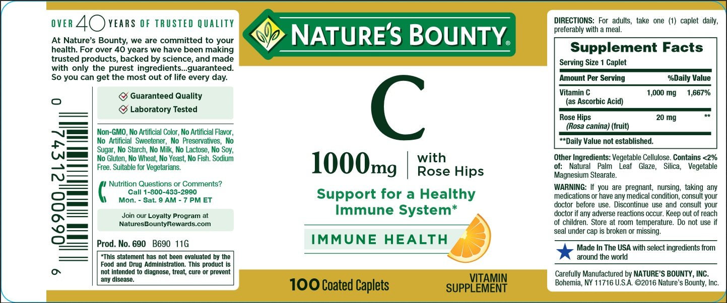 Nature's Bounty Vitamin C 1000 mg w/Rose Hips, 100 Caplets