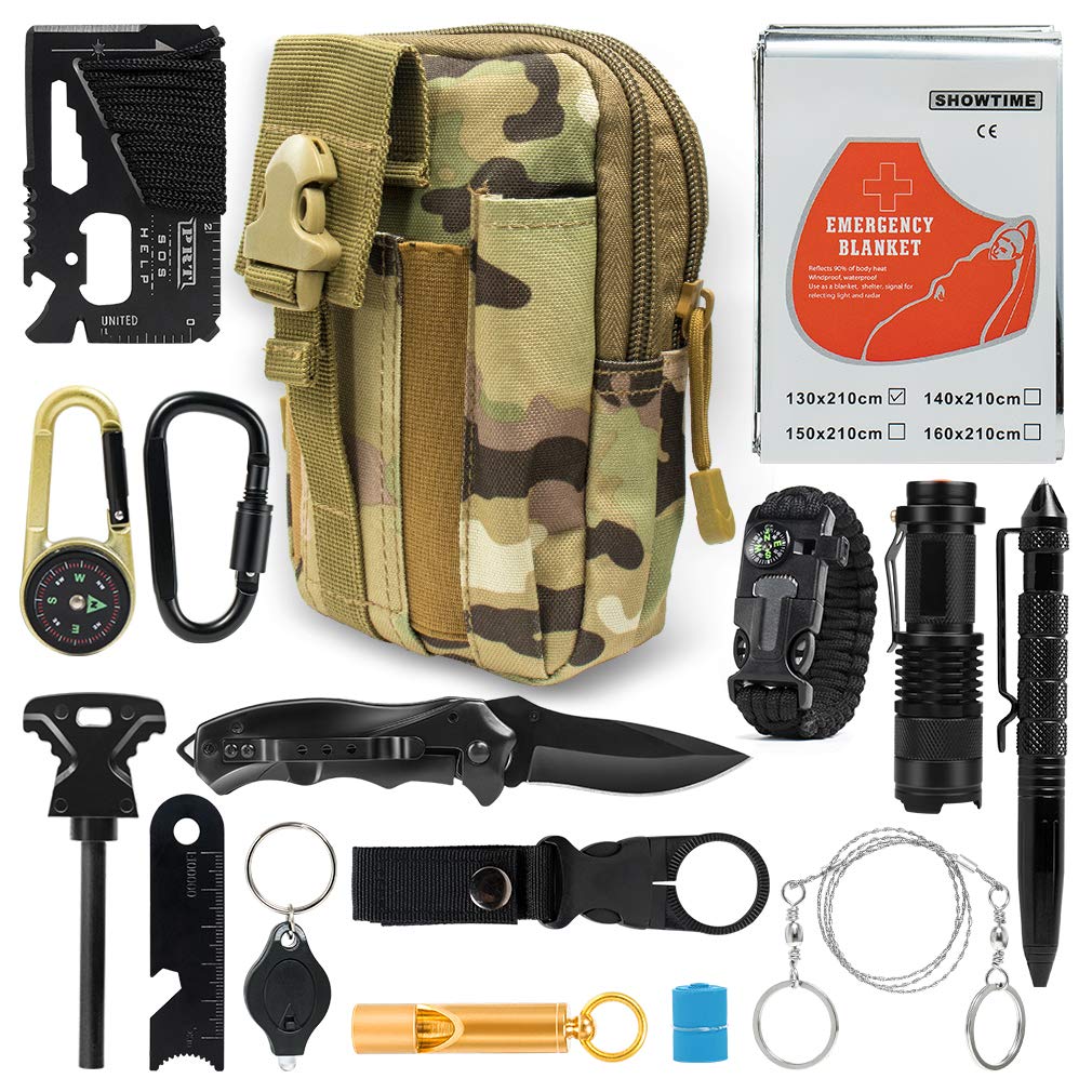 Puhibuox Emergency Survival Kit, 35 in 1 Survival Gear Kit Gift for Men Him, Tactical Defense Equitment Tool for Camping, Hiking, Hunting, Adventure Accessories