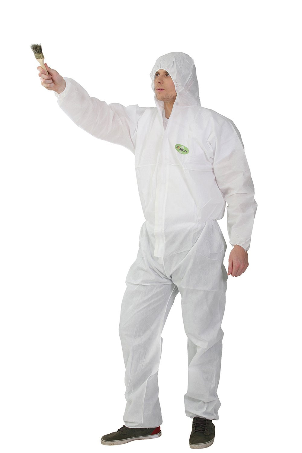 Raygard 30303 SMS Disposable Hooded Coveralls Suit Dust Chemical Protective Elastic Wrist, Ankles, Waist Zipper Front Closure for Spray Painting Medical Cleaning Work(2X-Large,White)
