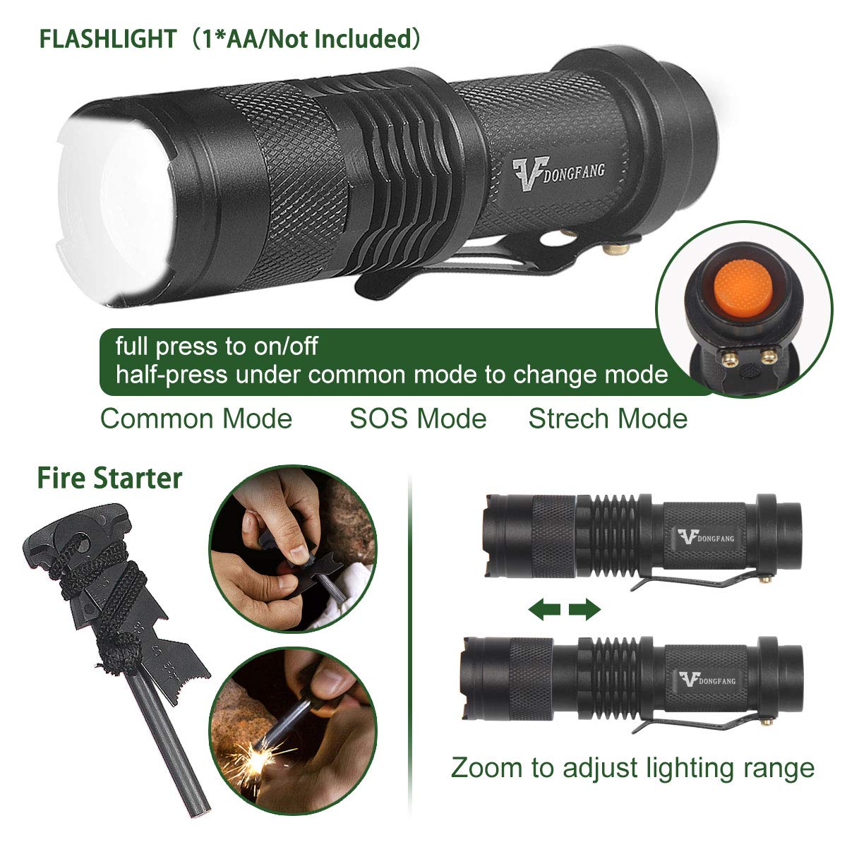VF DONGFANG Survival kit,12in1 Survival Gear Gift for Him Men Husband Dad Boyfriend Boys,First aid kit for Hiking/Emergency kit.Survival Bracelet/Emergency Blanket/Tactical Flashlight-Camping Gear