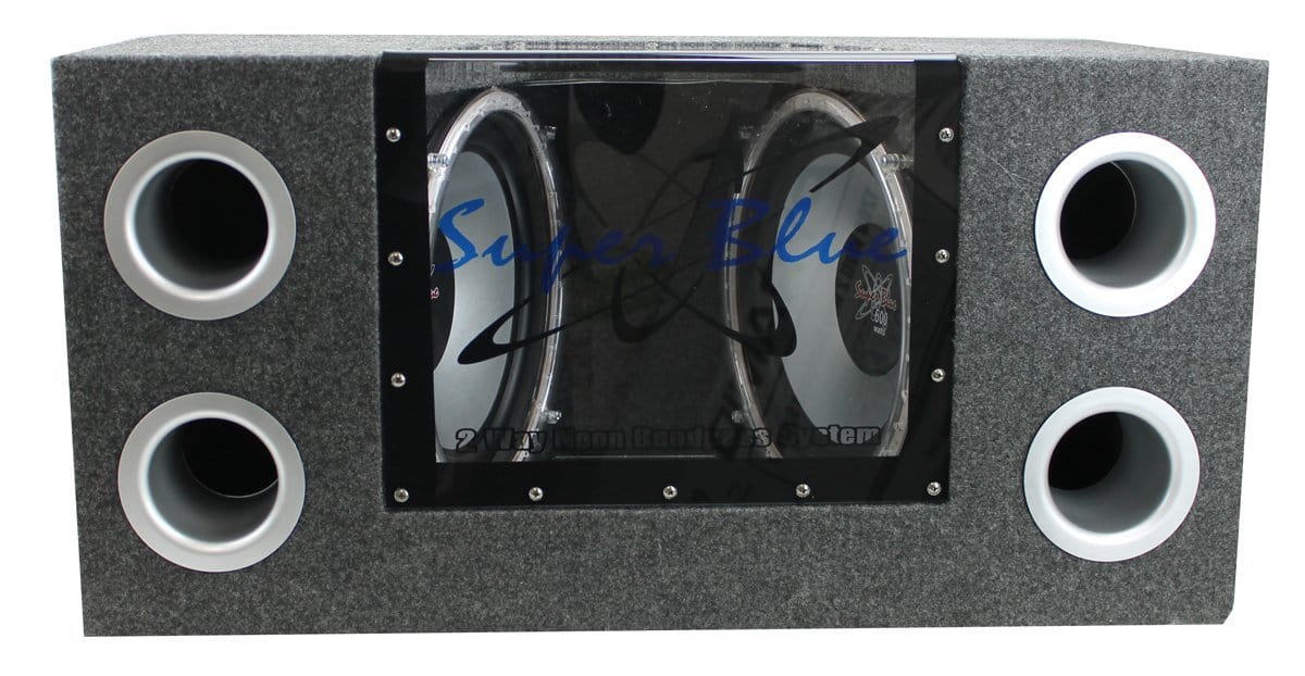1000W Dual Bandpass Speaker System - Car Audio Subwoofer w/ Neon Accent Lighting, Plexi-Glass Front Window w/ 4 Tuned Ports, Silver Polypropylene Cone & Rubber Edge Suspension - Pyramid BNPS102