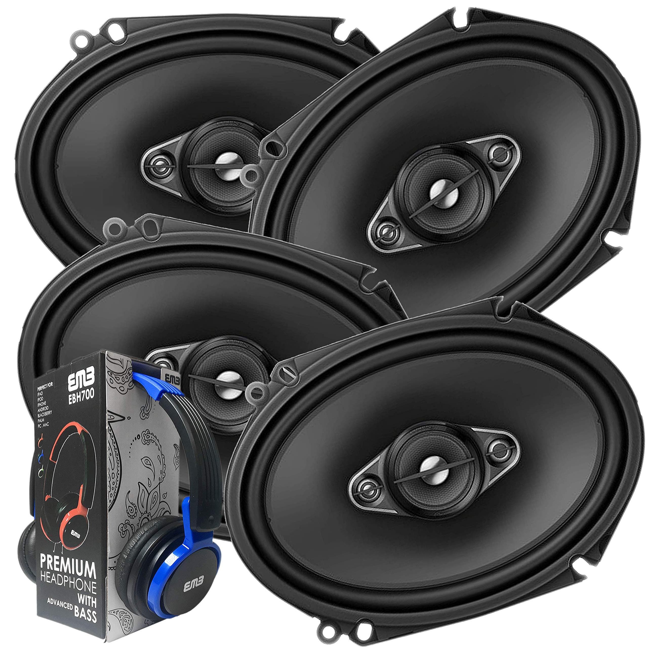 2 Pairs of Pioneer 5x7/ 6x8 Inch 4-Way 350 Watt Car Audio Speakers | TS-A6880F (4 Speakers) + Free EMB Premium Headphone