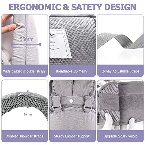 - Ergonomic for parents-As your baby grows and gets heavier, carrying your baby for long periods of time without a carrier can be very hard on your body.Not only does the hip seat absorbs the weight of your baby so that the weight you feel will also be significantly lighter, this baby carrier comes with a high waist belt (same concept as the waist protection belt that movers wear when they have to carry heavy items) to protect your lower back.
