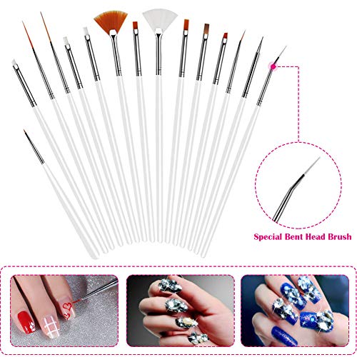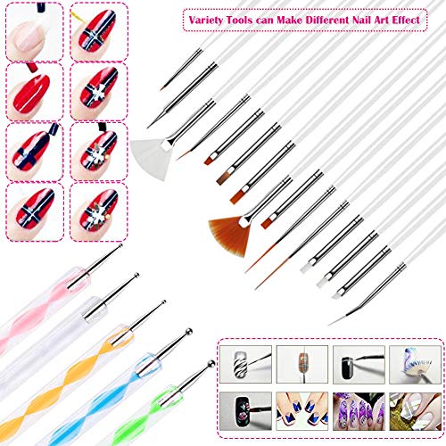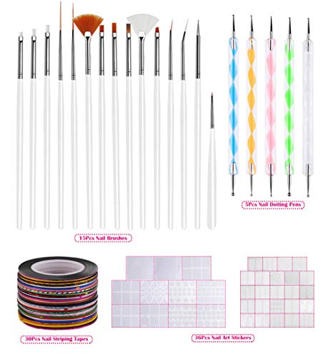 Anezus Nail Art Brushes Nail Art Painting Polish Design Tools Set with 15Pcs Nail Gel Brushes, 5Pcs Nail Dotting Pen, 30 Colors Nail Striping Tape and 36 Sheets Nail Stencils French Tip Guides Sticker